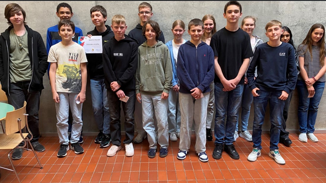 Konstiantyn Lemeshko von der Kantonsschule Reussbühl holt Gold Konstiantyn Lemeshko im Kreis der Känguru-Teilnehmenden der Kantonsschule Reussbühl, Luzern.