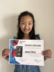 Jane Choi,  Schülerin der 6. Klasse an der Schule Apfelbaum in Zürich, hat beim Känguru-Wettbewerb 2025 in der Kategorie der 5./6. Klasse die volle Punktzahl von 120 Punkten erreicht und dafür die verdiente Goldmedaille erhalten.